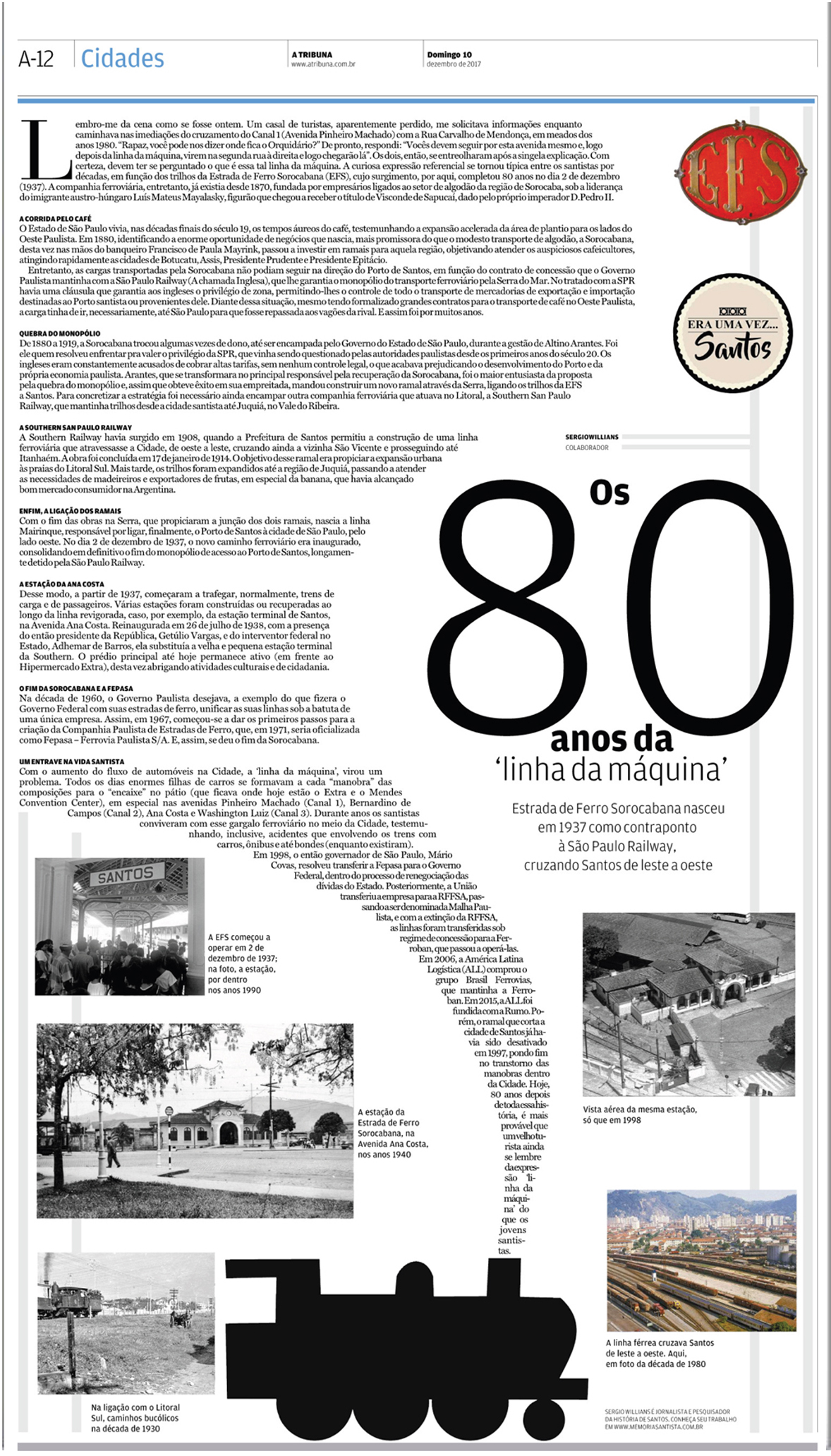 EDIÇÃO DE 10 de dezeMBRO DE 2017No último artigo do ano de 2017, Sergio Willians faz uma referência aos 80 anos da Estrada de Ferro Sorocabana, |