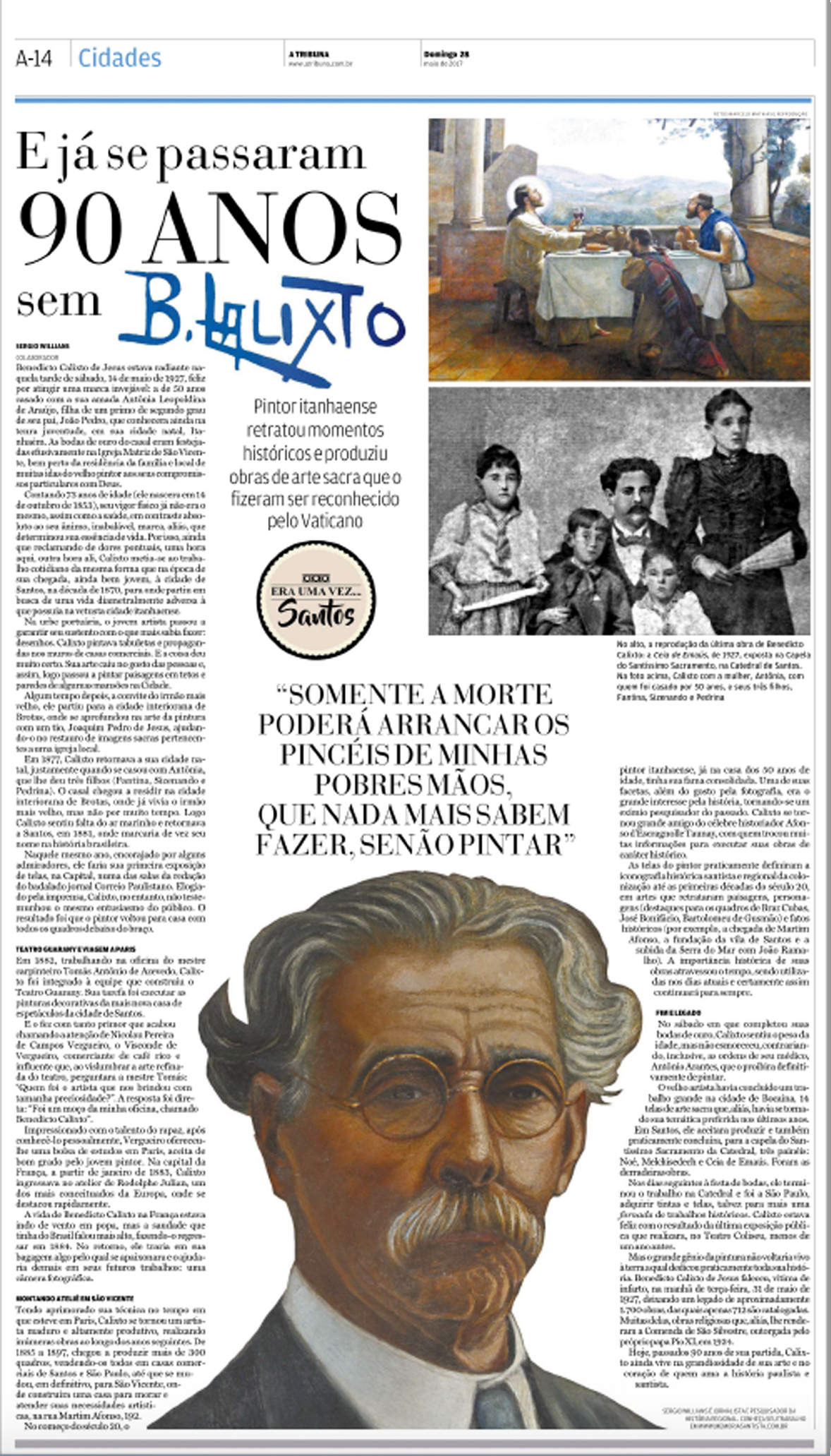 EDIÇÃO DE 28 de maio DE 2017Sergio Willians narra a trajetória de um dos maiores mestres da pintura brasileira, Benedicto Calixto de Jesus, cuja morte ocorrera há 90 anos. |