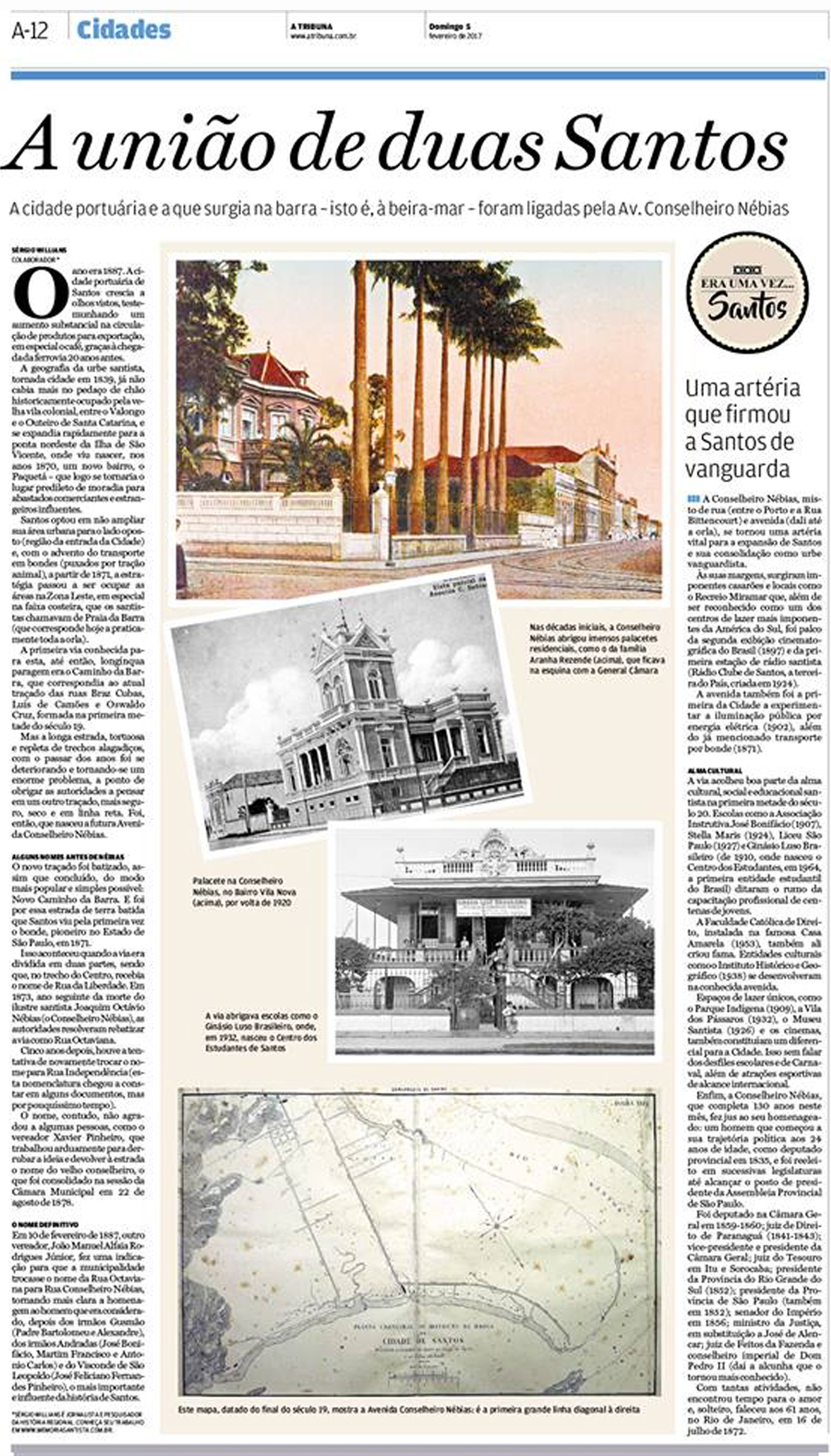 EDIÇÃO DE 5 DE fevereIRO DE 2017Sergio Willians aborda a história da avenida Conselheiro Nébias, no seu aniversário de 130 anos. |