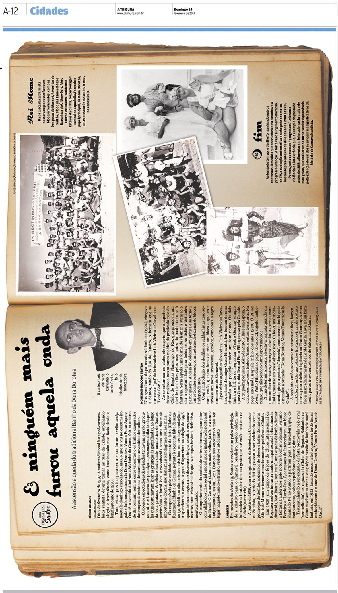 EDIÇÃO DE 19 de fevereiro DE 2017Sergio Willians escreve sobre um dos mais tradicionais eventos da história do Carnaval santista, a famosa patuscada "Dona Doroteia, Vamos Furar Aquela Onda?", extinta em 1997 por conta da violência. |