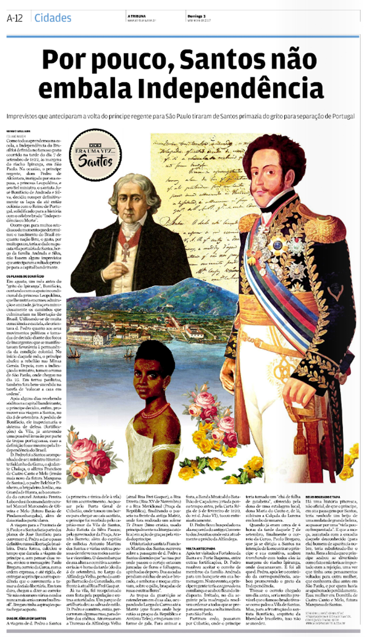 EDIÇÃO DE 3 de SETEMBRO DE 2017Sergio Willians aborda sobre o plano de Bonifácio de tentar fazer de Santos o palco da Independência do Brasil e sobre o dia de D. Pedro em Santos à vespera do fato histórico. |