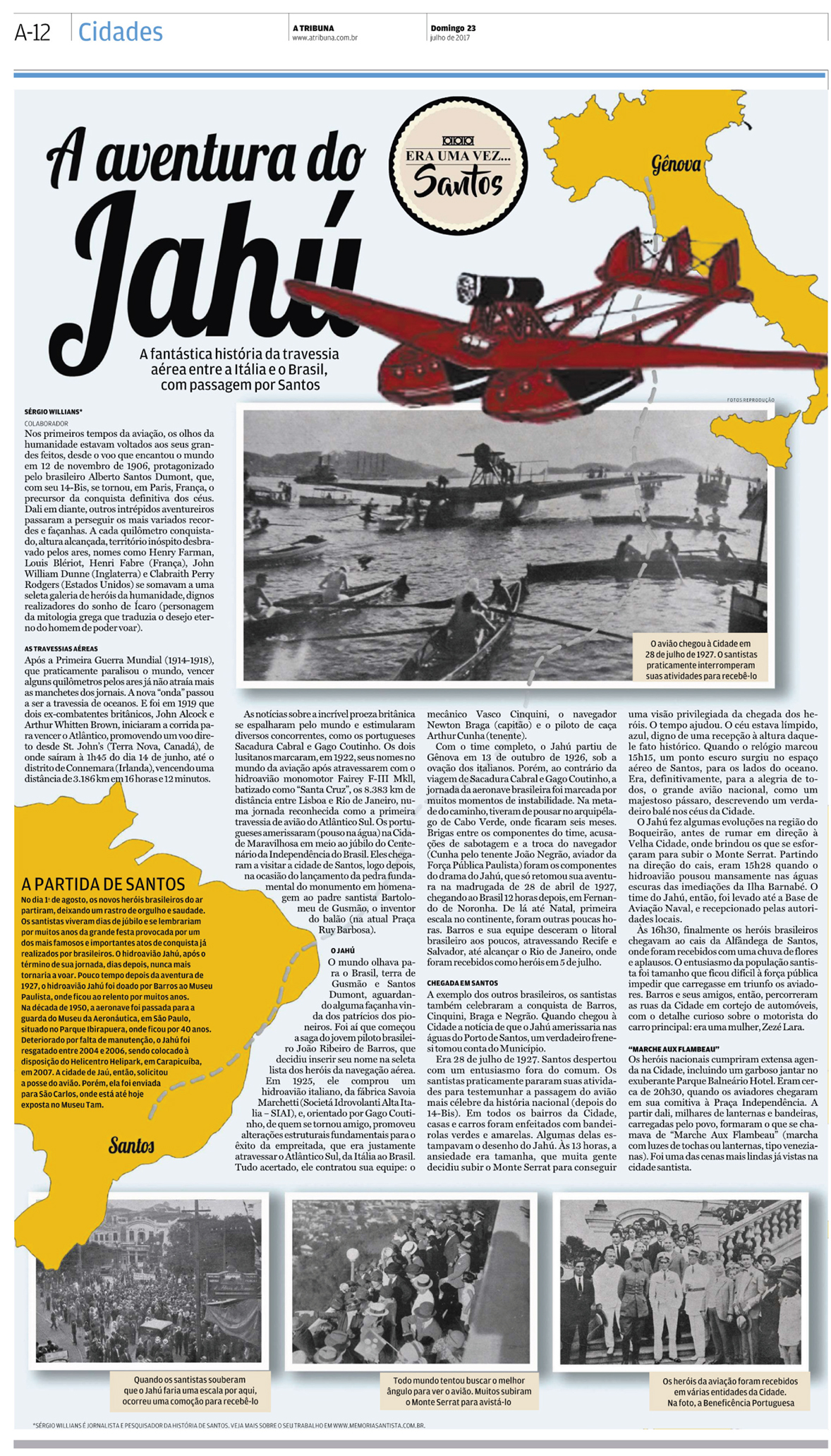 EDIÇÃO DE 23 de julho DE 2017Sergio Willians conta a incrível história do hidroavião Jahú e do dia em que os santistas pararam tudo o que faziam para testemunhar a passagem deste ícone da aviação nacional. |
