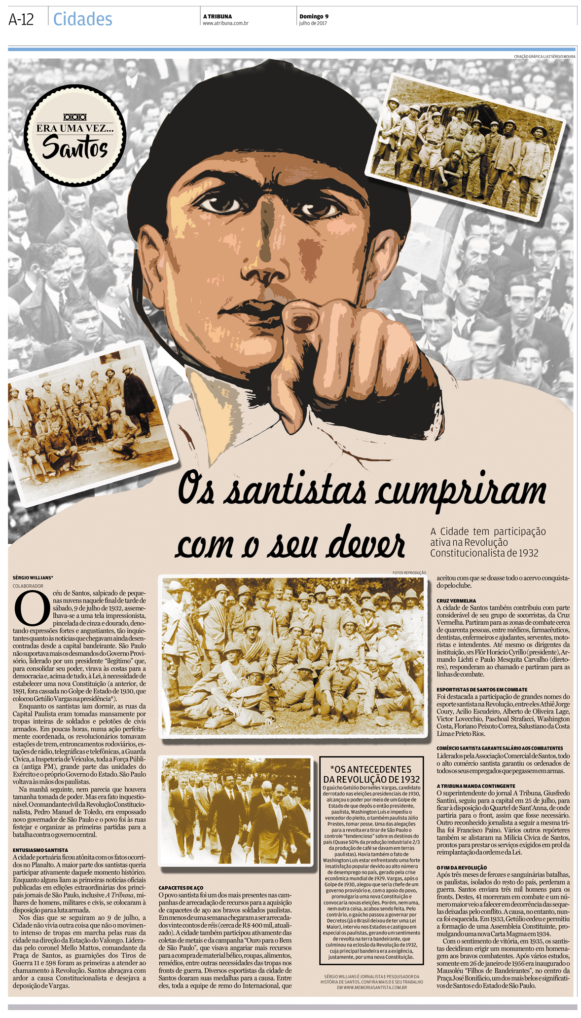 EDIÇÃO DE 9 de julho DE 2017Sergio Willians conta como os santistas enfrentaram o período em que foi deflagrada a Revolução Constitucionalista de 1932. |
