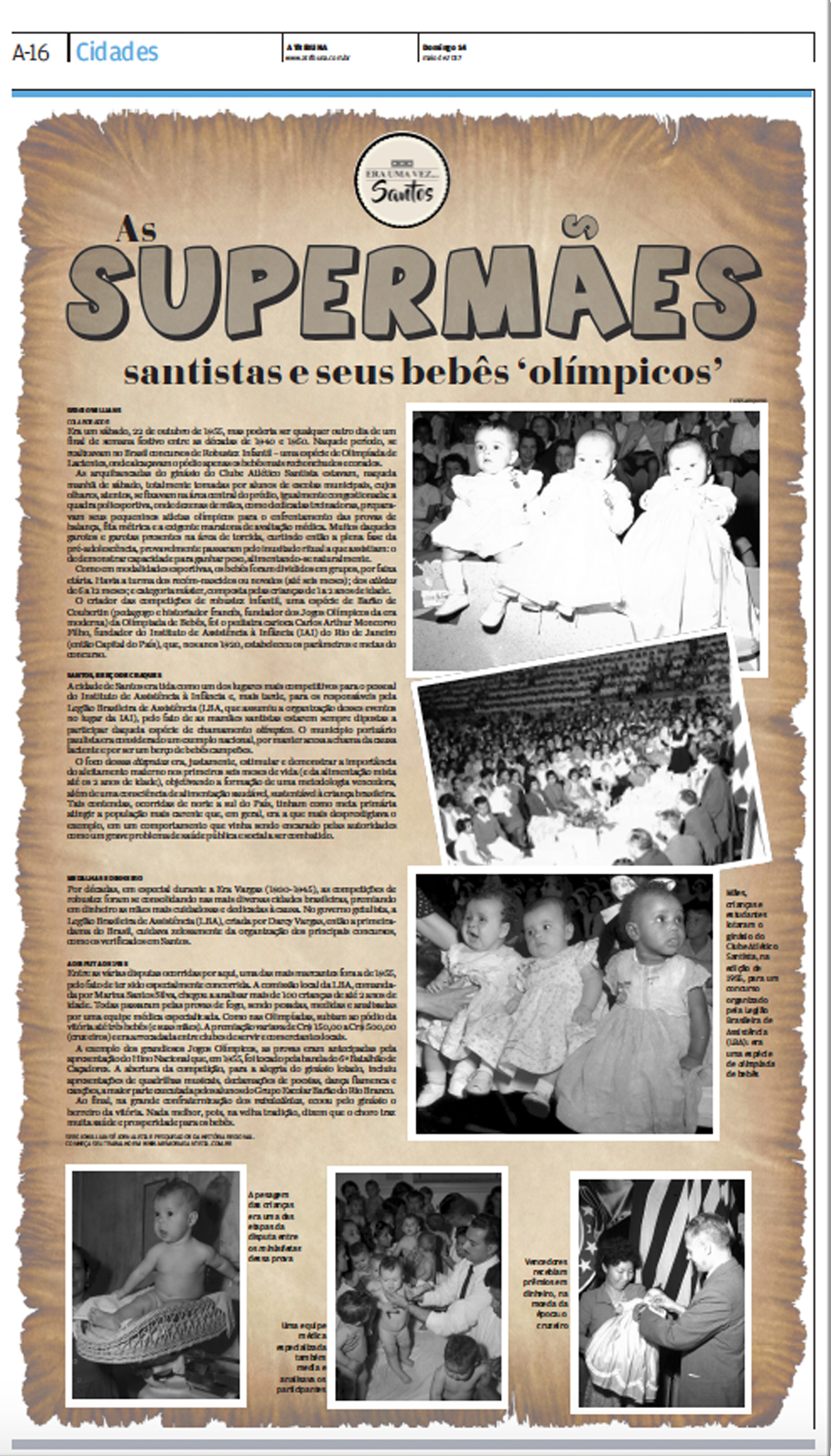 EDIÇÃO DE 14 de MAIO DE 2017Sergio Willians fala sobre os antigos concursos de Robustez Infantil, comuns entre os anos 1930 e 1960. Santos sempre promoveu grandes eventos desta natureza, com o apoio da Legião Brasileira de Assistência (LBA). |