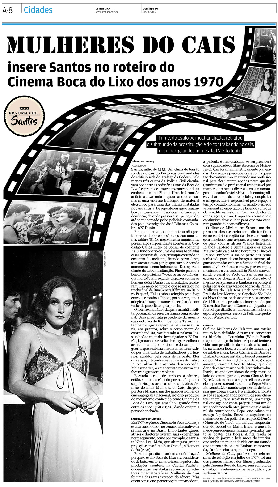 EDIÇÃO DE 14 de julhO DE 2019Trazendo algo mais contemporâneo, o jornalista Sergio Willians fala sobre o lançamento do filme "Mulheres do Cais", do diretor José Miziara, um marco do cinema Boca do Lixo dos anos 1970. O filme teve como locação as ruas da zona do baixo meretrício do Paquetá, além de cenas nos morros e na praia. |