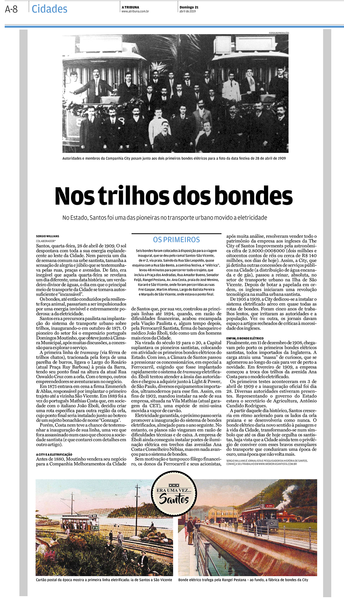 EDIÇÃO DE 21 de abril DE 2019O transporte sobre trilhos urbanos, o famoso "bonde", foi o tema do primeiro artigo do mês de abril, em comemoração aos 110 anos do lançamento do sistema eletrificado. |