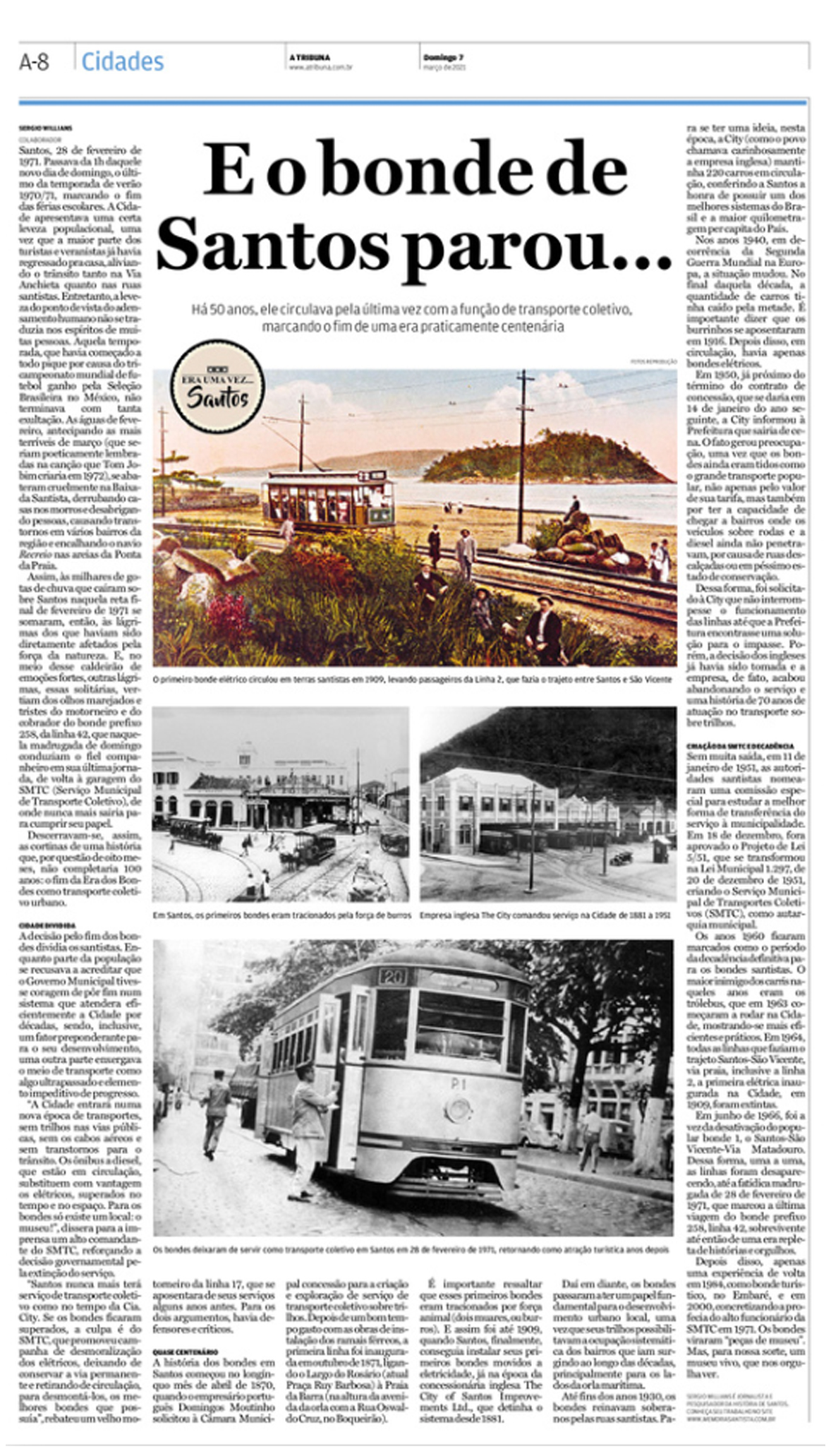 EDIÇÃO DE 07 de maRÇO DE 2021Sergio Willians aborda sobre o fim do sistema de transporte urbano por bondes, paralizado em fevereiro de 1971. |
