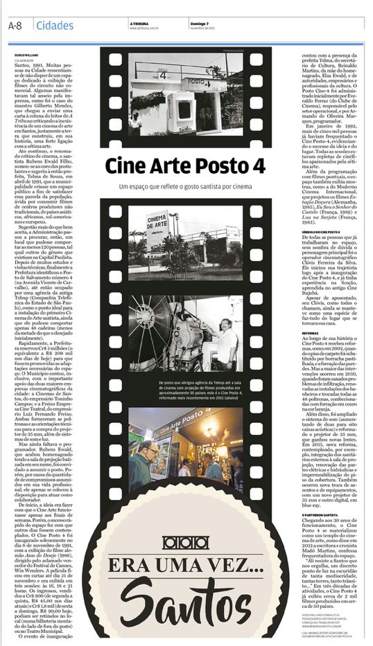 EDIÇÃO DE 07 de novembro de 2021O Posto Cine Arte completava 30 anos de atividades e ganhou um artigo inédito de Sergio Willians. |