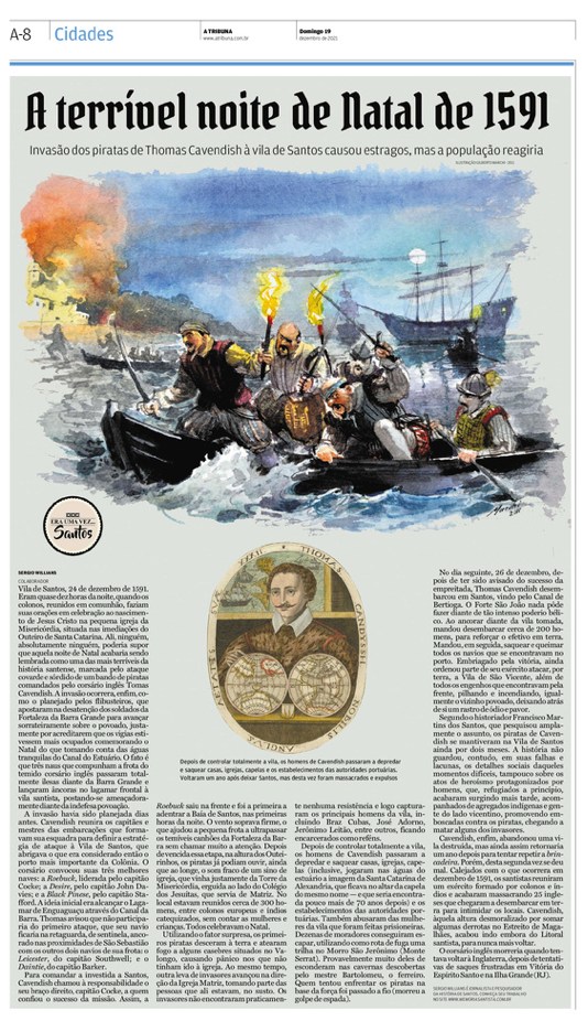 EDIÇÃO ESPECIAL DE 26 DE JANEIRO DE 2021Artigo especial de duas páginas, onde o jornalista Sergio Willians promove uma "entrevista" com a personificação da cidade de Santos. Página dupla. Esta é a continuação da página acima. |