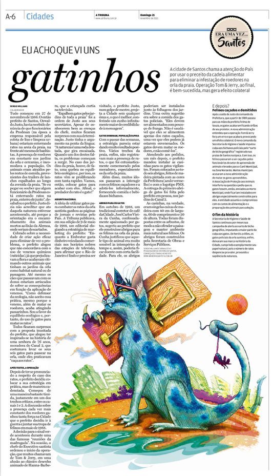 EDIÇÃO DE 21 de novembro de 2021O famoso caso dos gatos colocados na orla da praia para eliminar os ratos, que ganhou espaço na mídia de todo o país, foi o tema da coluna em novembro. |