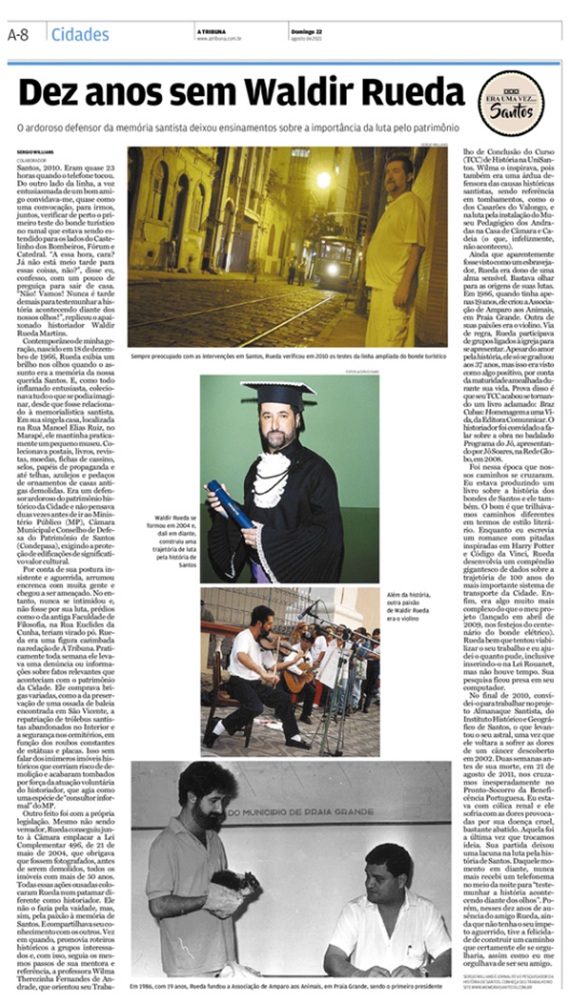 EDIÇÃO DE 22 de AGOSTO de 2021Sergio Willians lembrou os dez anos da morte de seu grande amigo e parceiro de trabalhos e pesquisa, o historiador Waldir Rueda, nesta bela homenagem. |